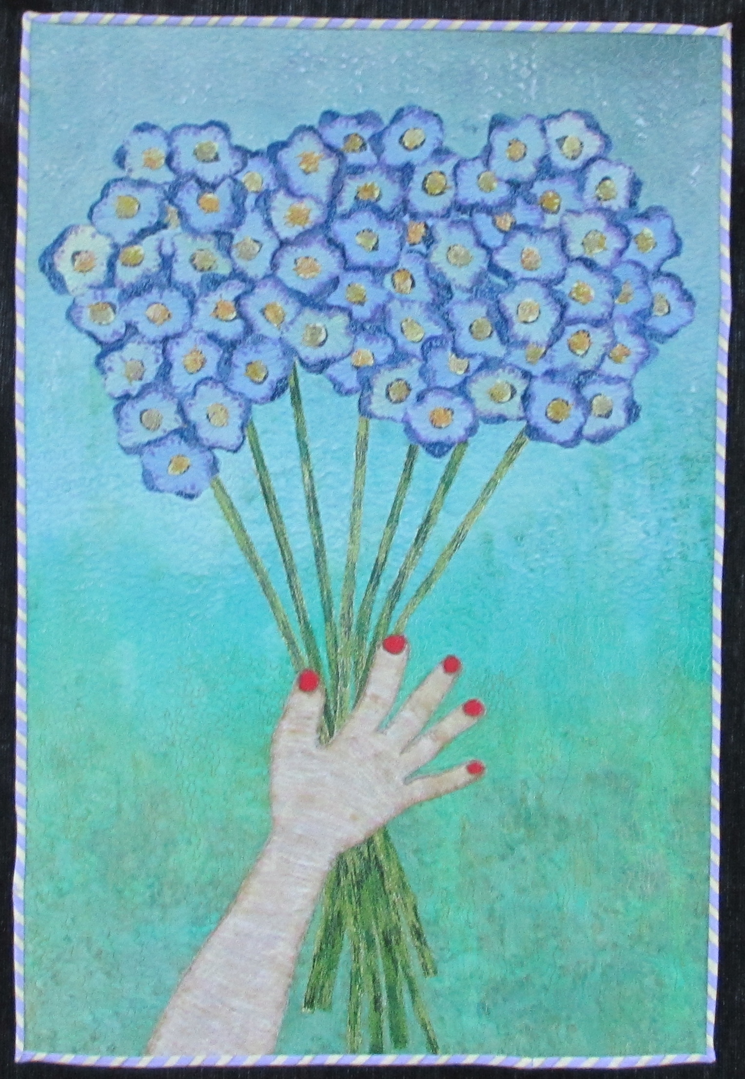 “Delphinium fields” A 8 piece floral collection curated by Deborah Stanley will be in travel mode starting May 2013. Thrilled to have “Handful” travel the full circuit of shows with the Mancuso quilt shows organization. Honored to be amongst such wonderful talented artists. Artistic Expressions is a wonderful group founded by Deborah Stanley. Each of us brings a bevy of artistic ideas to the table at every meet. Much more additional info here…http://5artisticexpressions.blogspot.com