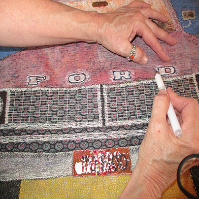 All 24 are completed, well at least to the first stage. The most difficult part was deciding which “Rides” to include in the mix. I continually think of more that would have been perfect. It’s all about those details or finishing touches, you need those cool classic logos like Ford, Mustang, etc. along with those quirky fine details including windshield wiper’s, steering wheels, shading etc. You get what I’m sayin! More finishing photos along with a video coming soon. Many shout outs need to go out, Valdani Threads, Deborah Stanley and a special shout out to Mancuso Quiltfest Shows! Appreciate this wonderful opportunity. Feeling incredibly blessed and grateful. Keepin it real and always fun. CCR2 in 2016. Stay tuned….
