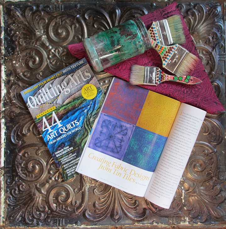 A whole lot of love going on in-between my “Cool Classic Rides.” Hope you have a chance to catch my article in Quilting Arts Magazine April/May issue “Creating Fabric Designs from Tin Tiles” also available via download/dvd. Be sure to check you’re local PBS listings. In my area, series 1900, episode 12 titled “Color It Beautiful” airs this Sunday April 9th, 2017. Additional info, quiltingartstv.com